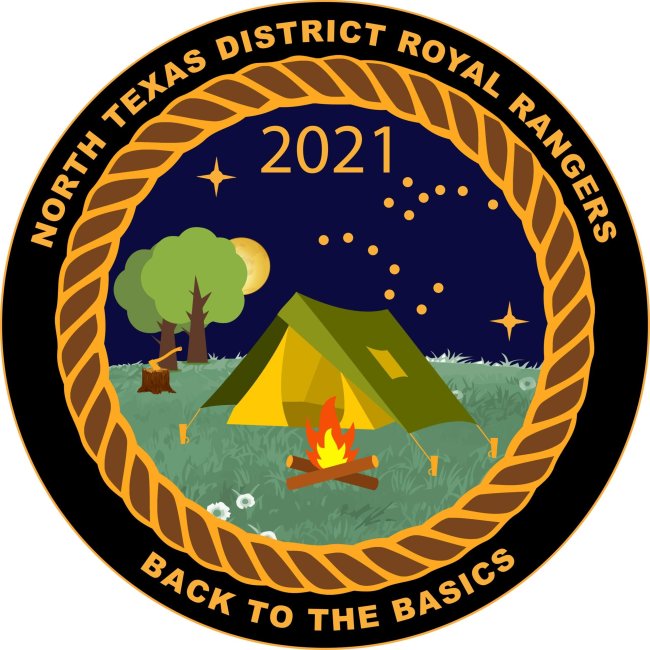 Designed For: North Texas Royal Rangers Category: Attendee Patch Date: April 2021 Type of Event: Camp Event Name: Pow Wow