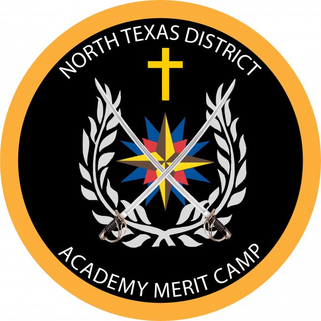 Designed For: North Texas Royal Rangers Category: Attendee Patch Date: June 2019 Type of Event: Training Event Name: Academy Merit Camp This is an undated event patch used every year for the Academy Merit Camp, a camp held as part of the Junior Leadership Development Academy (formerly called the Junior Leadership Training Academy).