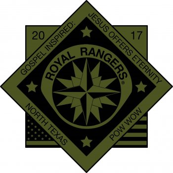 Designed For: North Texas Royal Rangers Category: Attendee Patch Date: April 2017 Type of Event: Camp Event Name: Pow Wow